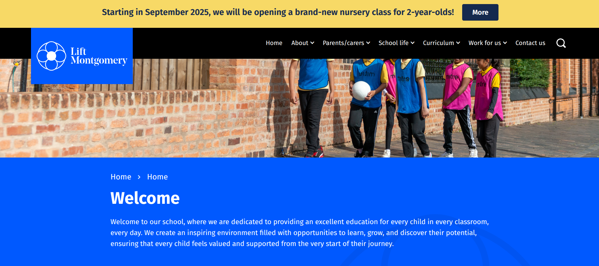 We’re excited to share some great news! Starting in September 2025, Lift Montgomery will be opening a brand-new nursery class for 2-year-olds. If your child will be 2 years old by September 2025 and you’re interested in a nursery place, please look out for more information coming your way in the summer term.
